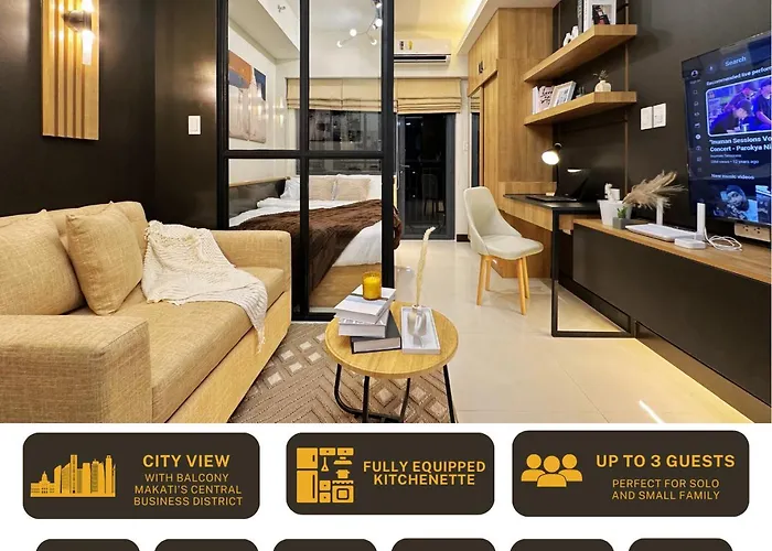 Collectiveから徒歩で5分の場所に位置するベッドルーム1室のThe Makati Suites At Red Residences, Premium Studio, City View, Makati Cbd, Wi-Fi マニラ市からは、周辺のさまざまな観光スポットへ行きやすいです。 家族向けの27m²のアパートは、お客様の快適な滞在のためにプールとテラスを提供しています。